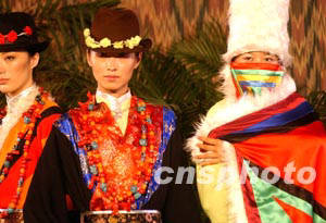 八月五日,法國·中國文化年中華民族服飾展演活動在北京舉行發(fā)布會,模特現(xiàn)場表演部分將于今秋亮相法國巴黎的民族服飾。中新社記者:武仲林