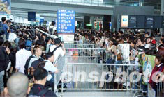 今天下午二時(shí)四十分許,驟雨初歇。皇馬隊(duì)員乘飛機(jī)從東京抵達(dá)香港國際機(jī)場。二千多名球迷帶著歡迎橫額和鮮花,在機(jī)場接機(jī)大堂迎候。當(dāng)一眾球星步出通道時(shí),球迷發(fā)出歡呼和尖叫聲,閃光燈閃個(gè)不停。