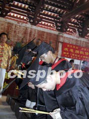 中新社肇慶八月八日電(黃耀輝岑瑞青)今天上午,嶺南著名的國(guó)家重點(diǎn)文物保護(hù)單位廣東德慶孔廟迎來了二00三年廣東高考“狀元”中的五名學(xué)子的朝圣。