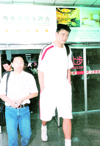 中新網(wǎng)8月10日電 昨天下午3時35分,合肥駱崗機(jī)場出現(xiàn)了一個人們熟悉而高大的身影——姚明!