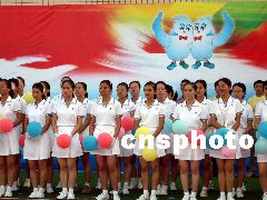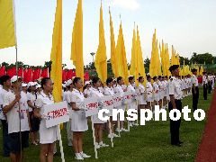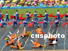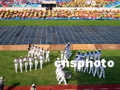 2003年8月10日下午5時,以《青春放飛新世紀(jì)》為主題的廣東省第六屆大學(xué)生運動會開幕式在湛江師范學(xué)院體育場進(jìn)行第二次預(yù)演,規(guī)?涨埃始姵。熱烈、奔放、高昂、大氣的格調(diào)令人耳目一新。李滿青 攝
