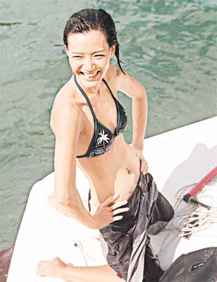 中新網8月13日電 昨日香港女星盧巧音(Candy)聯(lián)同EO2成員Otto及Osman、Eric Kwok(前Swing樂隊成員)組成Music Ranger隊,在驟晴驟雨下參加“全運會——滑水比賽”,結果Candy大熱勝出,以一比○贏了DJ隊。