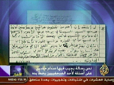 中新網(wǎng)8月14日電 卡塔爾半島電視臺13日播出了一封據(jù)稱是來自伊拉克前總統(tǒng)薩達姆的親筆信。薩達姆在信中號召伊拉克占大多數(shù)的什葉派穆斯林“討伐異教,發(fā)動圣戰(zhàn)”,抵抗入侵者。