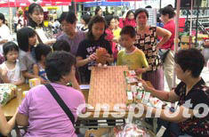 圖為市民和游客興致勃勃地參加有獎(jiǎng)游戲活動(dòng)。