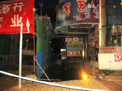 新華網(wǎng)的消息則引述地下工程事故現(xiàn)場目擊者介紹,他們當時只聽到轟隆一聲,隨后看到位于花園街和奮斗路交口處的本色演藝迪吧門前塌陷出一個50平方米左右的大坑,幾名路人隨即掉了下去。