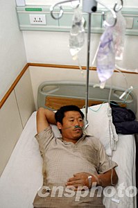 圖為來自吉林榆樹的受傷民工董彥山經(jīng)過搶救已經(jīng)完全脫離危險。作者:寧秀英