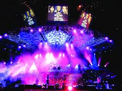 BEYOND三子來(lái)京做宣傳時(shí),已向歌迷透露:演唱會(huì)當(dāng)天,將采用高科技手段讓去世的家駒和自己同臺(tái)演唱。據(jù)悉,科技人員將運(yùn)用3D原理“克隆”出一個(gè)和真人別無(wú)二致的“黃家駒”,然后在舞臺(tái)中央設(shè)置一個(gè)經(jīng)過(guò)特殊處理過(guò)的紗幕,通過(guò)高清晰投影儀將家駒的影像投射在上面。當(dāng)晚歌迷可以看到家駒親切地和大家打過(guò)招呼后,與BEYOND三子共同唱起自己的遺作《抗戰(zhàn)20年》的場(chǎng)景。此次“超越BEYOND”演唱會(huì)的舞臺(tái)也要讓京城的歌迷開眼。據(jù)歌華太陽(yáng)公司負(fù)責(zé)人介紹,他們這次選用了科技含量非常高的旋轉(zhuǎn)升降子母臺(tái),就是在巨大的舞臺(tái)內(nèi)部還“包”著一個(gè)可以自由伸縮升降甚至旋轉(zhuǎn)的子舞臺(tái)。為了方便觀看,在舞臺(tái)上還設(shè)置了兩塊巨大的LED以及三塊大屏幕投影。為保證音響效果,BEYOND演出使用的樂(lè)器、效果器和壓縮器等也將從香港空運(yùn)來(lái)京。