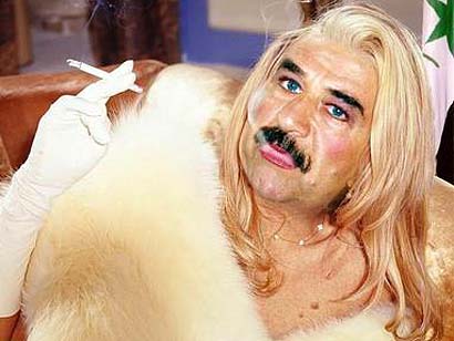 駐伊美軍已經(jīng)描繪并張貼了一系列有關(guān)薩達(dá)姆的畫像。在這些畫像中,薩達(dá)姆被描繪成了“貓王”艾爾維斯·普雷斯利,搖滾明星比利·艾多等等。駐伊美軍之所以如此做,目的在于試圖激怒薩達(dá)姆的追隨者。
