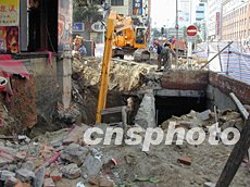 由于地下施工作業(yè)面小,地上又有不穩(wěn)定殘土,隨時(shí)有塌方危險(xiǎn),致使整個(gè)搶險(xiǎn)救援工作非常困難,進(jìn)展緩慢。據(jù)此,哈爾濱市搶險(xiǎn)工作采取地上和地下兩個(gè)作業(yè)面同時(shí)進(jìn)行,地上緊急調(diào)來(lái)1臺(tái)120噸的吊車和一臺(tái)長(zhǎng)臂挖掘機(jī)及多臺(tái)作業(yè)車,清理事故現(xiàn)場(chǎng)。
