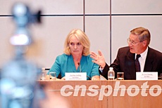 SARS專家委員會(huì)兩位聯(lián)合主席錢卓樂爵士【右】及葛菲雪教授,8月19日在香港召開記者會(huì),總結(jié)在香港一星期的工作情況,并表示將于10月2日提交報(bào)告。作者:洪少葵