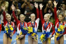 中國隊(duì)最后一項(xiàng)是相對(duì)較弱的項(xiàng)目自由操。首先出場(chǎng)的美國隊(duì)表現(xiàn)出色,三名出場(chǎng)的選手發(fā)揮越來越好,總分達(dá)到112.573分,實(shí)際上已經(jīng)提前把冠軍攬入囊中。中國隊(duì)選手接連出現(xiàn)了一些失誤,前兩名選手都沒有得到9分以上,最終只能以110.259分的總成績名列第四。羅馬尼亞隊(duì)獲得第二。澳大利亞在最后一個(gè)項(xiàng)目中發(fā)揮出色,奪取第三名。