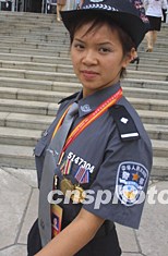 來自四川女子監(jiān)獄的獄警陳月代表一身戎裝參加大會。中新社記者:廖文靜