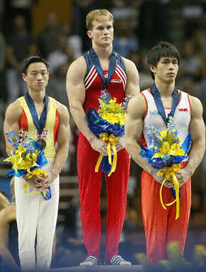 楊威參加的第五項是單杠,楊威未受資格賽失誤的影響,得了9.612分,總積分仍排在第一位。在最后一個的自由操的項目上,楊威順利的完成了動作,只不過在結束動作時落地不穩(wěn),得到了9.662分,總分為57.710分。不過,隨后出場的美國選手漢姆·保羅在單杠比賽中得到了9.775分的高分,總分達到57.774分,最終以微弱的優(yōu)勢奪取了冠軍,這也是美國百年體操歷史上首枚男子個人全能金牌。
