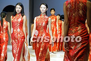 身著喜慶大紅旗袍的四十余名模特佳麗,二十三日在江西省會(huì)南昌市的T型臺(tái)上進(jìn)行緊張排練,她們將參加當(dāng)日舉行的新絲路模特大賽南昌賽區(qū)總決賽。中新社記者:毛建軍