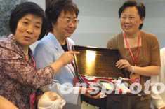 江西與澳門婦女代表成為聯(lián)誼“姊妹團(tuán)”,澳門婦女聯(lián)合會(huì)副會(huì)長(zhǎng)賀定一(左二)與江西婦聯(lián)主席李亞平(右一)互贈(zèng)禮品。江西代表團(tuán)贈(zèng)送文房四寶祝愿澳門婦聯(lián)書寫濃墨重彩的新篇章。中新社記者:廖文靜