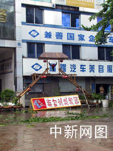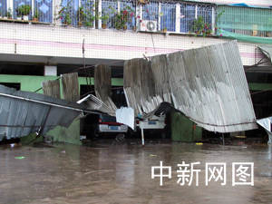 受其影響,海南省會?谑惺袇^(qū)出現(xiàn)一年來最大風(fēng)災(zāi),許多建筑遮陽棚被毀。