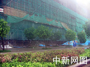 受其影響,海南省會海口市市區(qū)出現(xiàn)一年來最大風(fēng)災(zāi),一座在建的商住樓,建筑防護網(wǎng)被刮得七零八落。