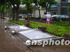 “科羅旺”臺風八月二十五日凌晨橫掃?谑袇^(qū)后,在濱海路兩側(cè)到處是“傷痕”累累的景象。圖為一座帶有空調(diào)設(shè)施的小報亭被臺風吹得東倒西歪。作者:蔣聚榮