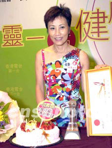 影視紅星汪明荃8月26日出席香港電臺節(jié)目“精靈一點‧健康一點”記者會,曾患癌癥的汪明荃將擔任節(jié)目主持,將向聽眾提供癌癥的信息。圖為汪明荃快將生日獲港臺送上生日蛋糕、鮮花等禮品。作者:鄧慶樂