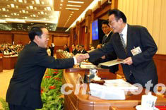 十屆全國(guó)人大常委會(huì)第四次會(huì)議今天上午在北京人民大會(huì)堂舉行,全國(guó)人大常委會(huì)副委員長(zhǎng)李鐵映在會(huì)上主持了任命書(shū)頒發(fā)儀式。