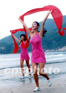 第二屆南方新絲路模特大賽的三十名選手在廣東臺山下川島沙灘激情上演美女秀。作者:李明
