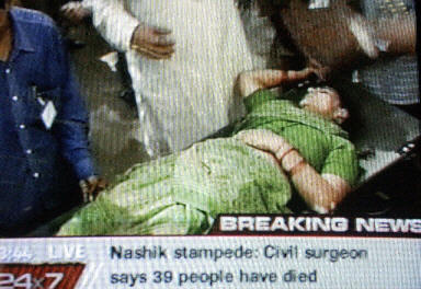 克里帕什安卡稱,數(shù)千名朝圣者齊聚馬哈拉什特拉邦納什科鎮(zhèn),按照慣例他們將在附近的哥達(dá)瓦里河進(jìn)行一種具有宗教色彩的“沐浴”,當(dāng)大量人群沖進(jìn)當(dāng)?shù)鬲M窄的街道向河岸跑時,發(fā)生了這一幕慘劇。