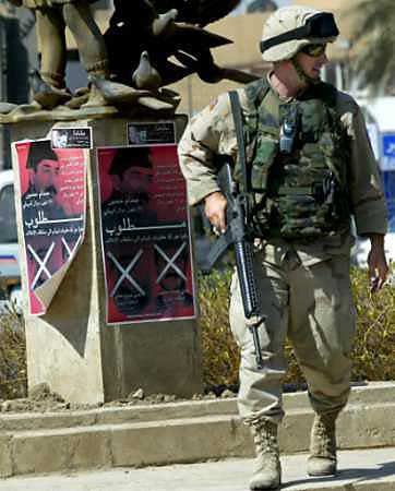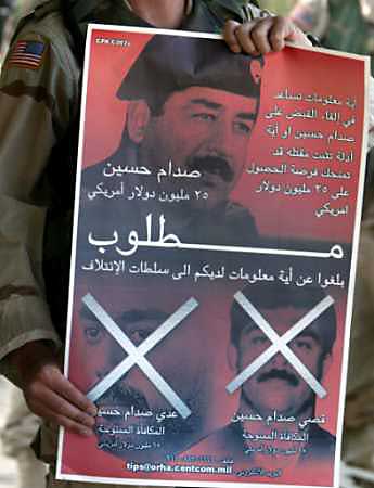 美軍士兵和伊拉克警察到處張貼懸賞捉拿薩達(dá)姆的海報時引來了眾多巴格達(dá)市民的圍觀。圍觀的人群當(dāng)中對捉拿薩達(dá)姆一事各有各的看法,一名現(xiàn)年23歲的伊拉克牙科醫(yī)生海德爾·阿里表示:“我認(rèn)為他們遲早會捉到薩達(dá)姆的,但有一些人似乎不知道任何有關(guān)這巨額獎賞的事!