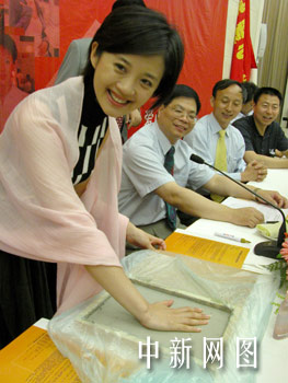 作為“愛(ài)心使者”的香港鳳凰衛(wèi)視知名節(jié)目女主持人許戈輝,今天在愛(ài)心之旅的壯行儀式上,被推舉第一個(gè)按下象征著愛(ài)心與弱者牽手的手印。此行活動(dòng)將采集100個(gè)貧困的受助人、100個(gè)愛(ài)心使者的手印,并用以制作一座“愛(ài)心牽手墻”,褒獎(jiǎng)愛(ài)心人士,傳揚(yáng)中華民族互愛(ài)互助的美德。