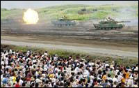 此次演習以阻止敵人登陸和攻擊為目的。演習以富士學校的2000多名學員為主力軍,出動了包括主力坦克“90式坦克”在內的60輛坦克和裝甲車、30架戰(zhàn)斗機以及70門大炮等裝備。裝甲加厚的“輕型裝甲車”在此次演習中首次亮相。