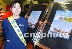 香港沙田馬場在八月三十一日新賽季開鑼日,首次開設(shè)游客專用區(qū),讓內(nèi)地自由行游客參與投注獲勁賞。圖為沙田馬場的游客親善大使。中新社記者:潘索菲