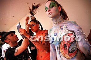 圖:巴西圣保羅攝影器材展上的人體彩繪表演