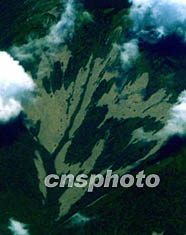陜西省八月下旬連續(xù)降雨造成嚴(yán)重的山體滑坡和洪水災(zāi)害。圖為秦嶺山區(qū)的一處滑坡。中新社記者:賈國榮