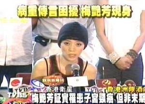 中新網(wǎng)9月5日電 藝人梅艷芳的健康狀況,最近成了香港熱門的八卦話題。有媒體言之鑿鑿說,這位香港歌壇的大姐大已身患重病。今天下午,梅艷芳在好友劉德華、張學(xué)友等圈中好友陪同下舉行記者會,說明自己的健康狀況,她坦承自己罹患了子宮頸癌。