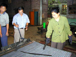山東省德州市晶華集團(tuán)晶峰福利機(jī)構(gòu)分廠聾啞人夫婦滕立強(qiáng)和李紅在上班。華夏時(shí)報(bào)圖