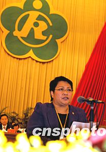 殘疾人國(guó)際主席維納斯·伊拉甘,在北京召開的中國(guó)殘疾人聯(lián)合會(huì)第四次全國(guó)代表大會(huì)上,向代表們致賀詞,并感謝中國(guó)各界為殘疾人所作的大量有效的工作。中新社記者:王麗南