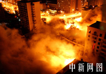 該樓原定今年四月份爆破拆除,由于北京春夏之交遭受非典型肺炎侵襲的影響,推遲到今天凌晨進(jìn)行。