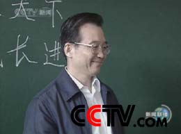 最后,溫家寶來(lái)到著名的北京第二實(shí)驗(yàn)小學(xué),到教研室看望教師,向他們祝賀節(jié)日。在五年級(jí)教研室里,他看到墻上寫(xiě)著“用百分之百的熱情去解決百分之一的問(wèn)題”,當(dāng)即用筆記下來(lái),并連聲稱贊這句話好。