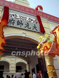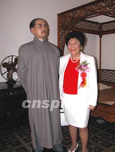 孫中山大元帥府紀(jì)念館全面開放暨門樓修建落成典禮儀式,十日在廣州孫中山大元帥府舊址舉行,孫中山的孫女孫穗芳專程回穗?yún)⒓釉擁?xiàng)活動,并在館內(nèi)與祖父的塑像合影留念。作者:劉衛(wèi)勇