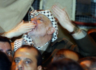 以色列總理沙龍9月11日召集安全內(nèi)閣緊急會議,決定驅(qū)逐巴勒斯坦民族權(quán)力機(jī)構(gòu)主席阿拉法特。巴勒斯坦民眾也行動(dòng)起來,聚集在阿拉法特位于約旦河西岸城市拉馬拉的官邸,保護(hù)阿拉法特。