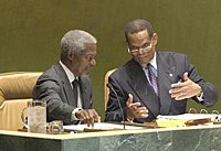 中新網(wǎng)9月17日電 第58屆聯(lián)合國(guó)大會(huì)16日下午在紐約聯(lián)合國(guó)總部開(kāi)幕,聯(lián)合國(guó)秘書(shū)長(zhǎng)安南以及來(lái)自191個(gè)聯(lián)合國(guó)成員國(guó)的代表出席了開(kāi)幕式。在本次大會(huì)中,以中國(guó)外交部長(zhǎng)李肇星為團(tuán)長(zhǎng)的中國(guó)代表團(tuán)將參加一般性辯論。