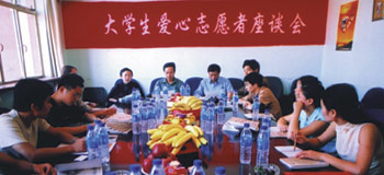 10日下午,太陽星城愛心之旅采訪團(tuán)抽身回京,與北京大學(xué)、清華大學(xué)等京城十余所著名大學(xué)的愛心志愿者面對(duì)面,聆聽學(xué)子們對(duì)于愛心的理解。