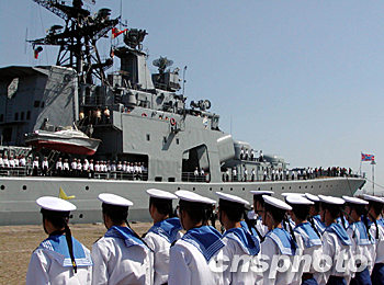 中國海軍北海艦隊某驅(qū)逐艦支隊“哈爾濱”號導(dǎo)彈驅(qū)逐艦執(zhí)行海上禮儀并陪訪!肮枮I”艦曾于1996年7月26日至8月2日,應(yīng)俄羅斯海軍邀請參加俄海軍建軍300周年慶;顒樱敃r“潘捷列耶夫海軍上將”號大型反潛艦是“哈爾濱”艦的陪訪艦。(米晉國)