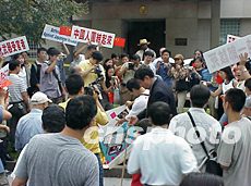香港保釣團(tuán)體到日駐港領(lǐng)館抗議日青社登上釣魚島