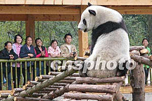 記者在現(xiàn)場看到,兩只大熊貓進入新獸舍后調(diào)皮地爬上鐵欄桿玩耍,一只名叫龍騰的大熊貓搬進新居后,便迫不及待地直撲室外放養(yǎng)場,興奮地四處奔跑。它時而啃食竹子,時而沿著圍墻邊蹚水嬉戲。放養(yǎng)場中間用木頭搭建的梯子則成了龍騰的健身場,只見它大搖大擺踱上梯子,又變著花樣從梯子上倒翻下來,其姿態(tài)甚為撒嬌。
