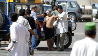 一名在自殺性爆炸事件中受傷人員被送往醫(yī)院