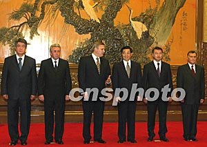 中新社北京九月二十三日電(記者 姜知然)中國(guó)國(guó)家主席胡錦濤二十三日下午在人民大會(huì)堂會(huì)見(jiàn)了來(lái)京出席上海合作組織總理會(huì)晤的哈薩克斯坦總理阿赫梅托夫、吉爾吉斯斯坦總理塔納耶夫、俄羅斯總理卡西亞諾夫、塔吉克斯坦總理阿基洛夫和烏茲別克斯坦總理蘇爾丹諾夫。