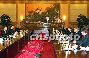 胡錦濤首先對(duì)上海合作組織總理會(huì)晤的成功舉行并取得重要成果表示祝賀。他說(shuō),這次會(huì)晤簽署及批準(zhǔn)的《上海合作組織成員國(guó)多邊經(jīng)貿(mào)合作綱要》等文件,為六國(guó)經(jīng)濟(jì)合作奠定了重要法律基礎(chǔ),必將進(jìn)一步推動(dòng)區(qū)域經(jīng)濟(jì)合作,并為組織的兩個(gè)常設(shè)機(jī)構(gòu)如期啟動(dòng)創(chuàng)造有利條件。