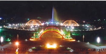 在休閑娛樂廣場上建有一圓形音樂旱噴泉,兼有表演和游戲功能。直徑30米,最高主噴38米。每天晚上8:00——9:00,廣場上的美妙的音樂,如幻的噴泉和絢麗的彩燈把每一個沉浸其中的人帶進(jìn)了人間天堂!