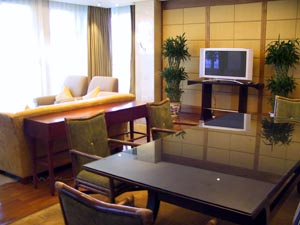 酒店每個(gè)房間均有獨(dú)立的更衣室,自動(dòng)紅外照明感應(yīng),自動(dòng)恒溫空調(diào),可以根據(jù)客人的習(xí)慣自動(dòng)記憶亮度及溫度,柚木厚重的家俬與三十多頻道多語(yǔ)言衛(wèi)星電視、寬帶上網(wǎng)接口實(shí)現(xiàn)了傳統(tǒng)與時(shí)尚的統(tǒng)一?头?jī)?nèi)法式浴缸與臥室之間以軟簾相隔斷,拉開(kāi)軟簾推開(kāi)陽(yáng)臺(tái),就是南海咸濕滋潤(rùn)的空氣,客人可以邊沐浴邊欣賞博鰲水天一色的美景。