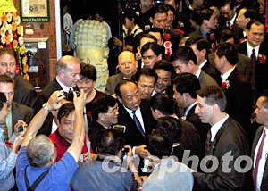 李肇星向僑胞介紹了他這次來美在華盛頓訪問的情況,稱訪問很有成果。當他提及布什重申美國繼續(xù)堅持“一個中國”原則,反對“臺獨”時,全場華僑華人報以熱烈的掌聲!